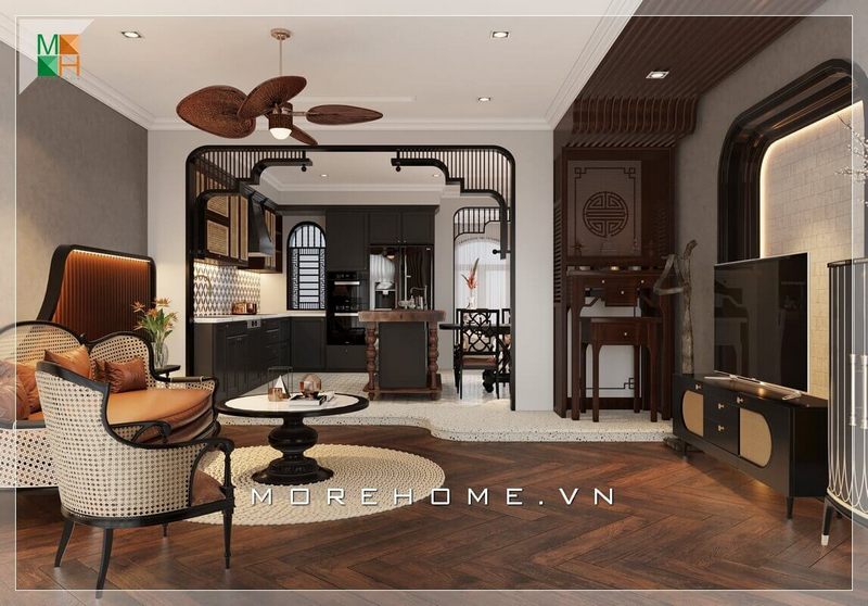Bố trí nội thất cao cấp theo phong cách tân cổ điển được chọn lựa cho không gian nhà ở nhà phố cao cấp.