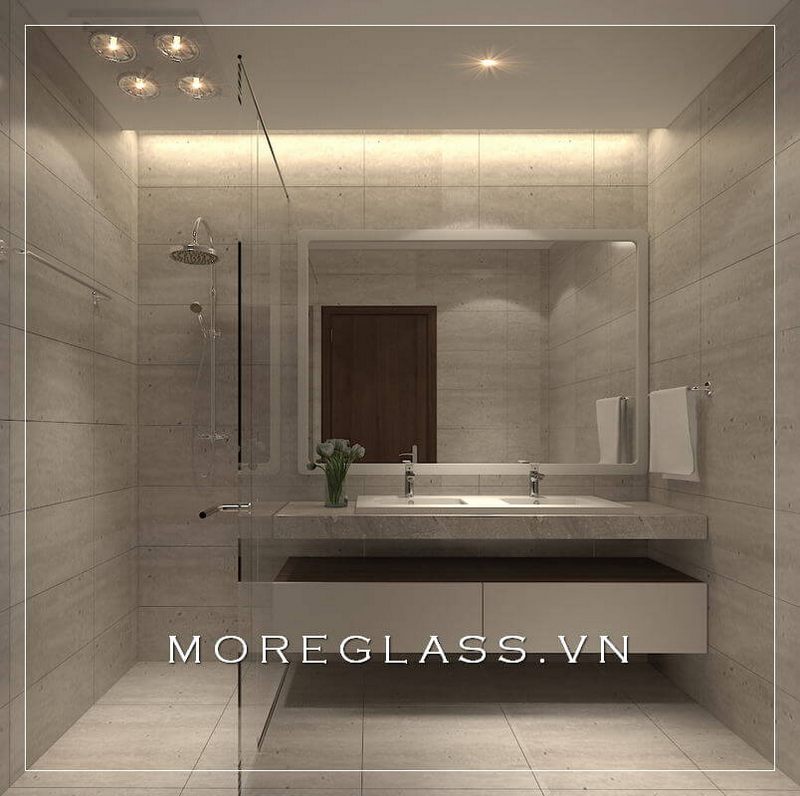 Mẫu phòng tắm đẹp, đơn giản và tiện nghi được trang bị vách ngăn kính cường lực cao cấp giúp ngăn chặn nước không bị hắt sang không gian xung quanh.