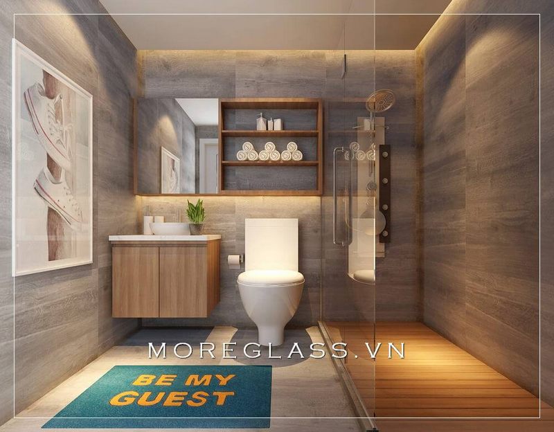 Mẫu thiết kế nhà tắm đầy đủ tiện nghi, bao gồm phòng tắm kính cường lực cao cấp, đã được hiển thị.