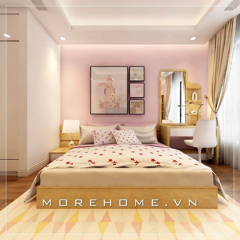 Mẫu giường ngủ gỗ công nghiệp với màu vàng nổi bật, đáp ứng tốt nhu cầu về mức đầu tư của nhiều gia đình.