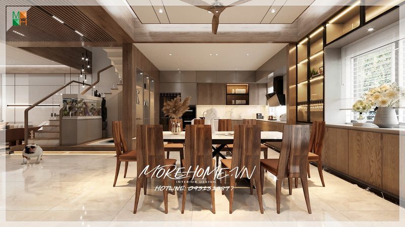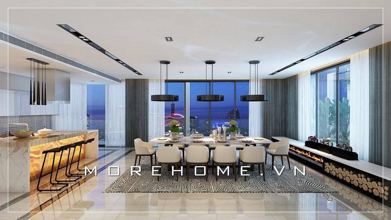 Thiết kế nội thất phòng ăn hiện đại, cao cấp để tạo ra một không gian thoải mái và đẳng cấp.